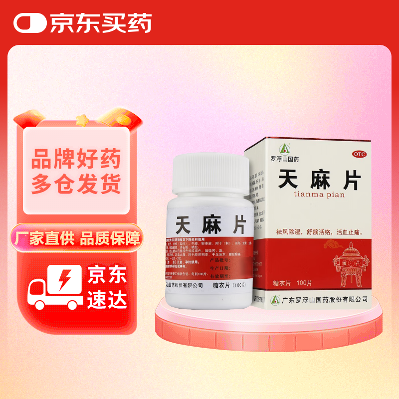 罗浮山 天麻片 100片 祛风除湿舒筋活络活血止痛用于肢体拘挛手足麻木腰腿酸痛
