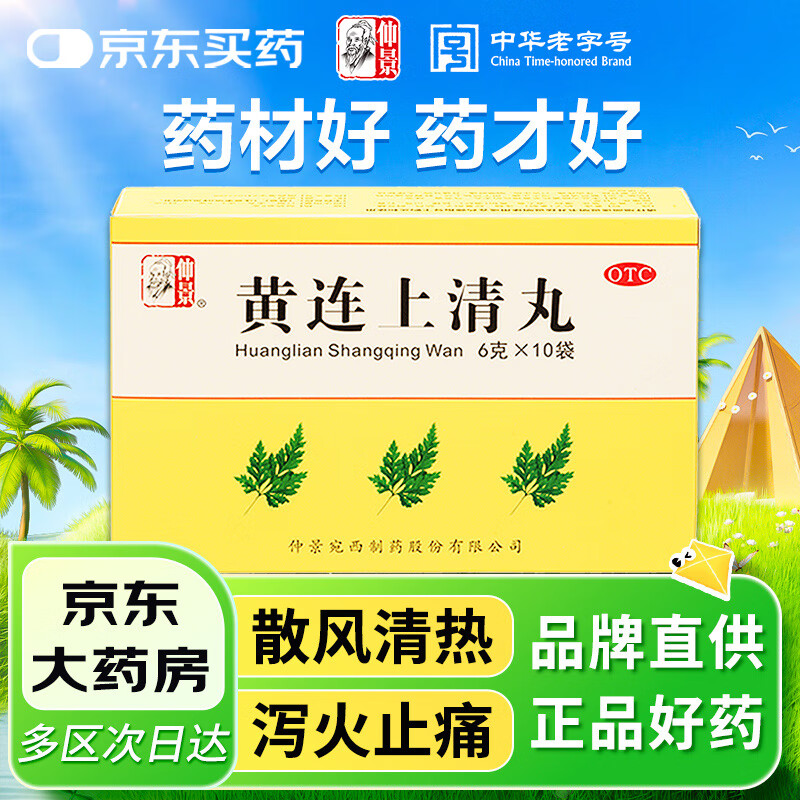 仲景 黄连上清丸6g*10袋 散风清热片 泻火止痛肺胃热盛口舌生疮牙齿疼痛咽喉肿痛耳痛耳鸣