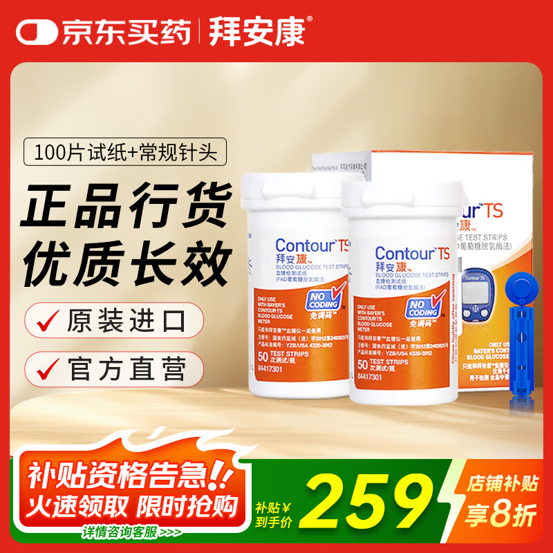拜耳(BAYER)拜安康血糖仪进口家用血糖试纸 适用拜安康(100片试纸+采血针)
