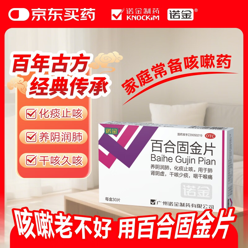 诺金 银诺克百合固金片 0.4g*30片/盒 化痰止咳养阴润肺清咽利喉 用于肺肾阴虚干咳少痰久咳咽干喉痛