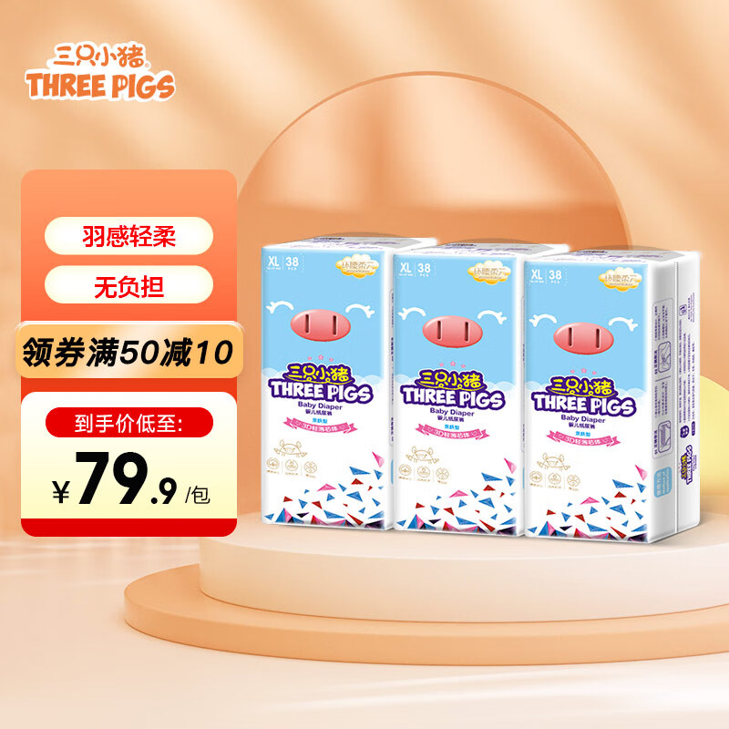 三只小猪Thethreepiggy3D轻薄纸尿裤XL码114片(12-17KG)品牌直供安心品质