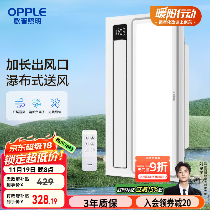OPPLE欧普(OPPLE)厨房凉霸数字显示吹风照明一体遥控凉霸 JDSH155