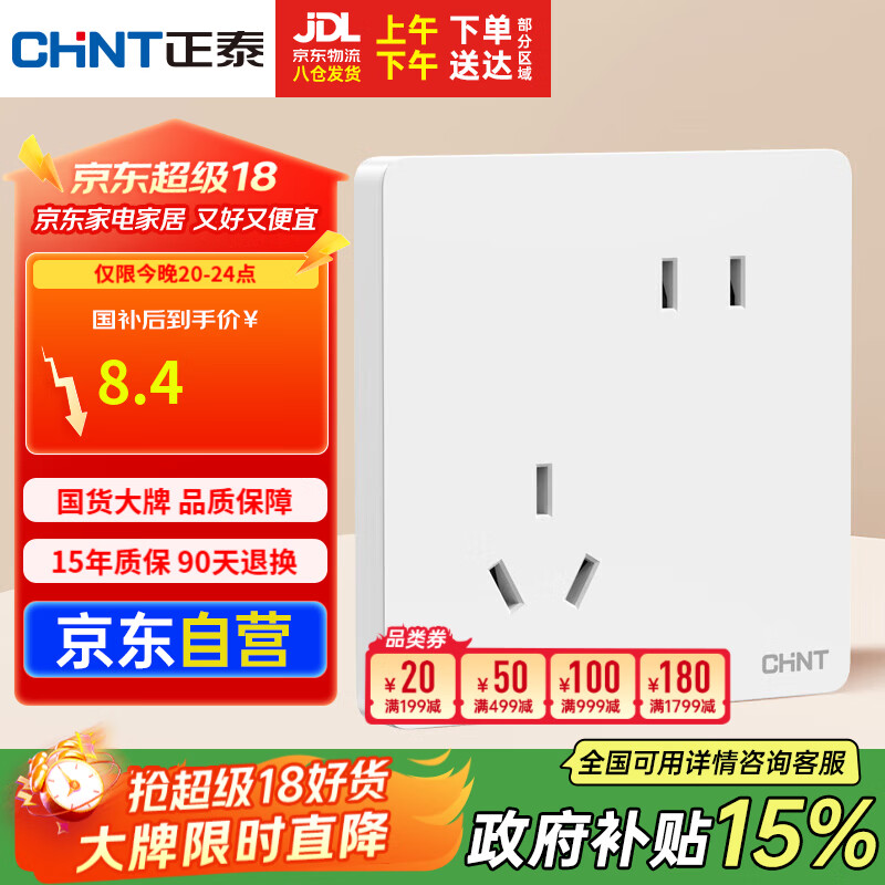 正泰(CHNT)开关插座 10a斜五孔插座 86型暗装插座面板 6c奶油白