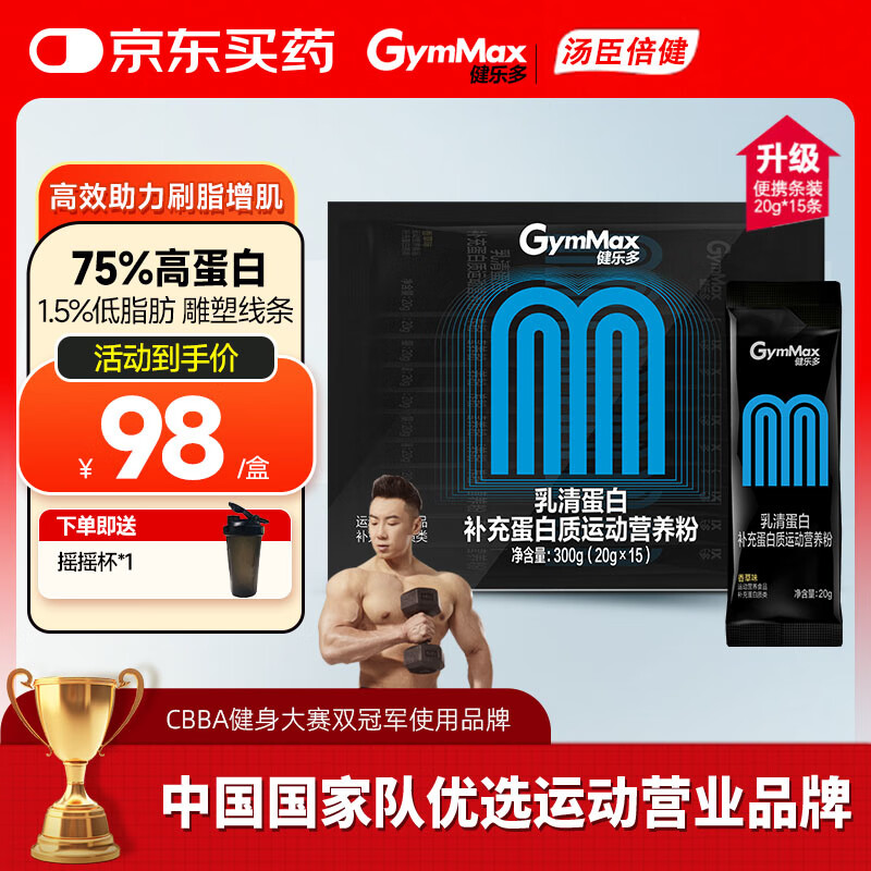 健乐多汤臣倍健分离乳清蛋白粉增肌粉进口75%高蛋白香草味300g/盒15袋
