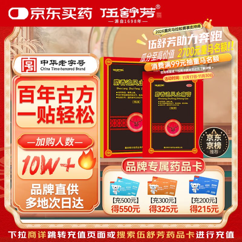 伍舒芳 希尔安 麝香追风止痛膏 7cm*10cm*4贴 祛风除湿 散寒止痛 关节 肌肉 扭伤疼痛 膏药