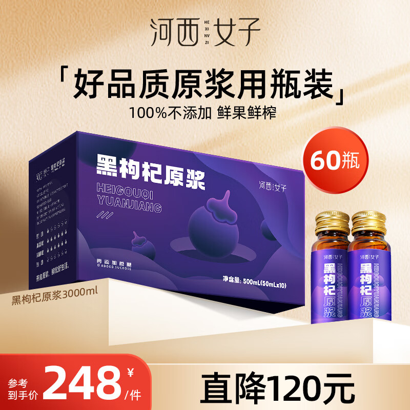 河西女子黑枸杞原浆500ml*6礼品盒 青海黑枸杞鲜果鲜榨不添加送长辈礼物