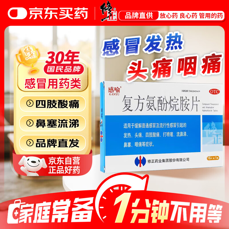 修正 复方氨酚烷胺片16片/盒 感冒发热头痛退烧药 打喷嚏流感流鼻涕鼻塞咽痛四肢酸痛