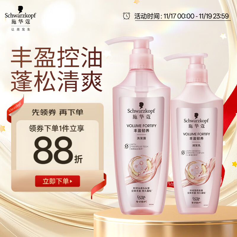施华蔻(Schwarzkopf)丰盈韧养洗护套装(600ml洗+400ml润)洗发护发素控油蓬松 新老包装