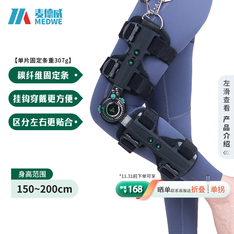 麦德威膝关节固定支具碳纤维膝盖护具支架髌骨骨折下肢腿部护具