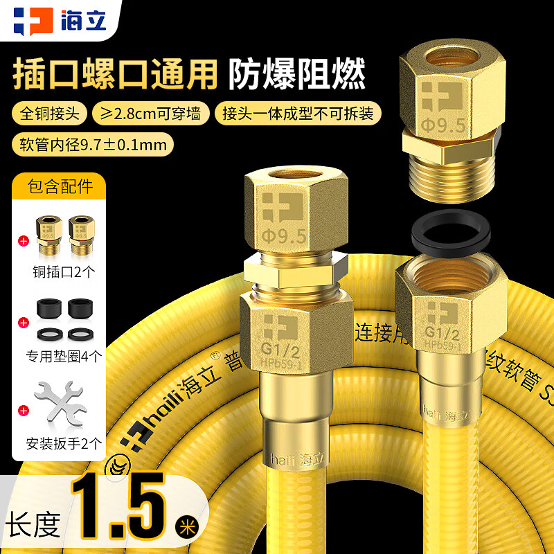 海立燃气管天然气软管304不锈钢防爆波纹管连接煤气灶热水器1.5米RB8