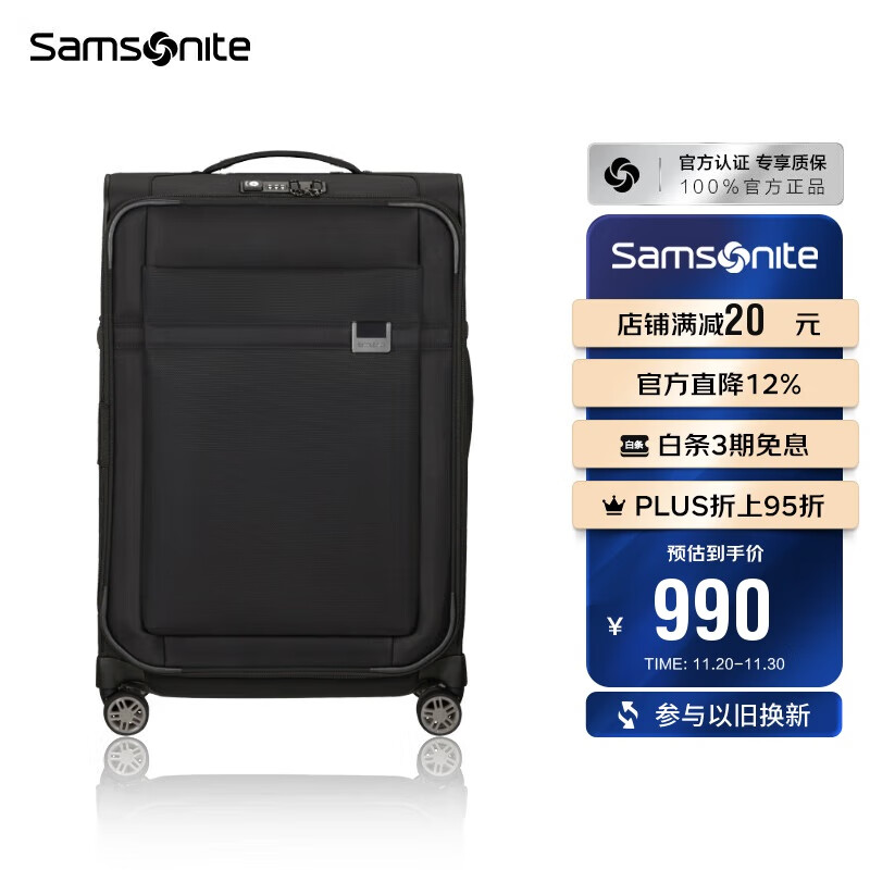 新秀丽(Samsonite)行李箱20英寸拉杆箱大容软箱飞机轮旅行箱包KE0黑色登机箱