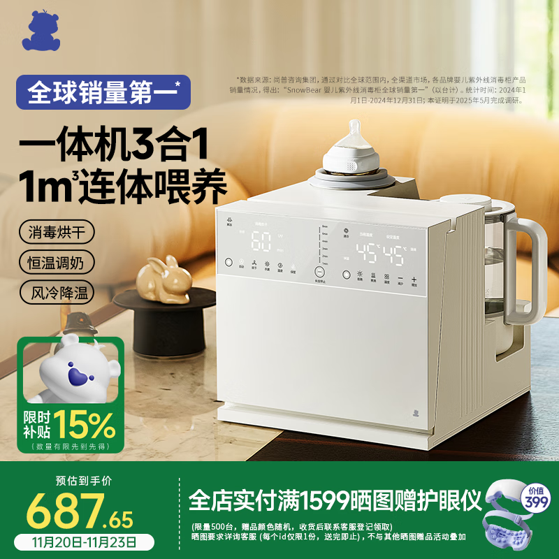 小白熊紫外线奶瓶消毒柜婴儿摇奶器恒温壶泡奶机三合一喂养台-5088