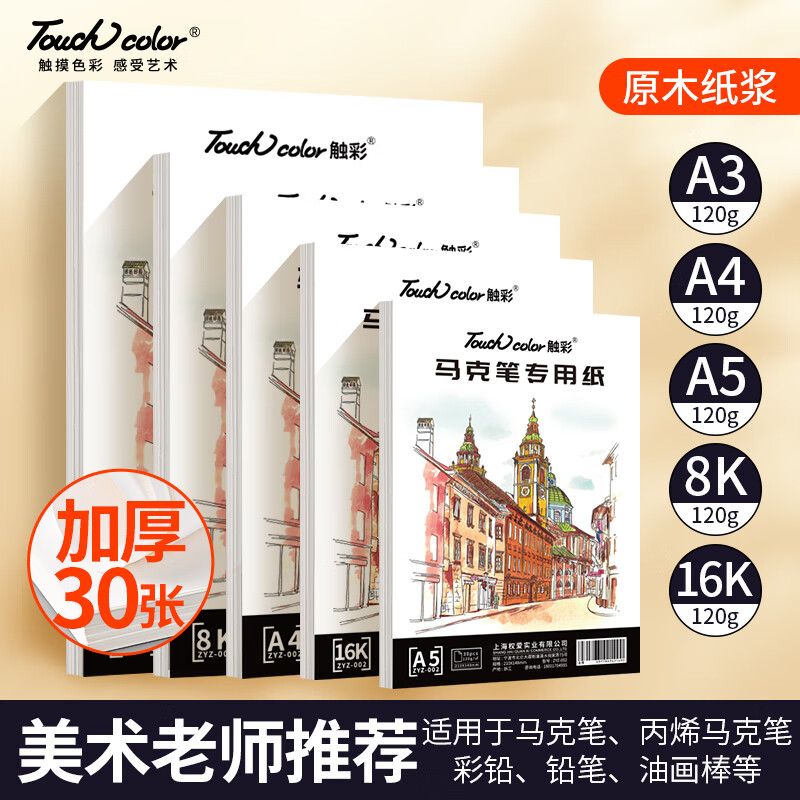 touch color马克笔专用纸加厚8K手绘动漫画画空白纸美术生专用丙烯水彩绘画纸8开马克本手抄报专用本子