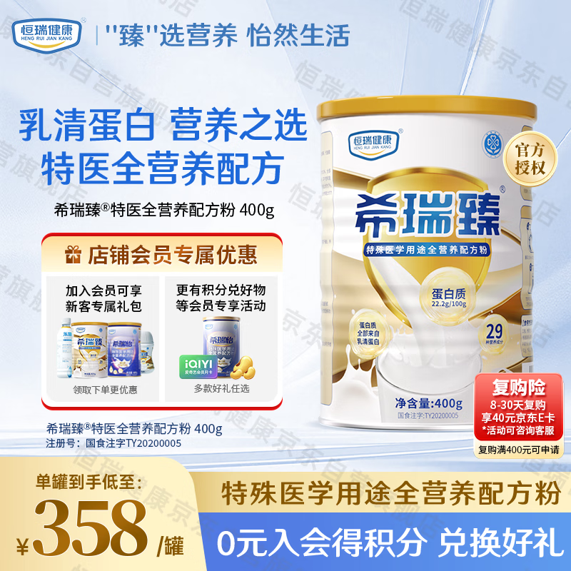 恒瑞健康希瑞臻 特医全营养配方粉 400g*1罐 含乳清蛋白|多罐装更优惠