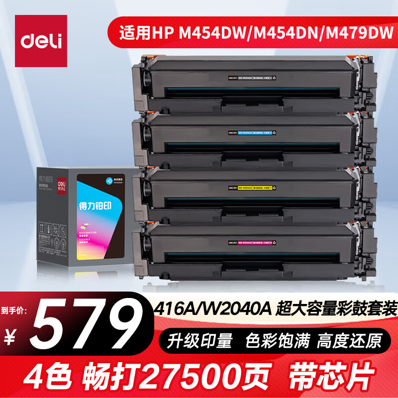 得力(deli)416a硒鼓 W2040A硒鼓适用惠普m479dw硒鼓 hp m479fdw m454dw m479fnw m454dn打印机 升级大容量彩色套装