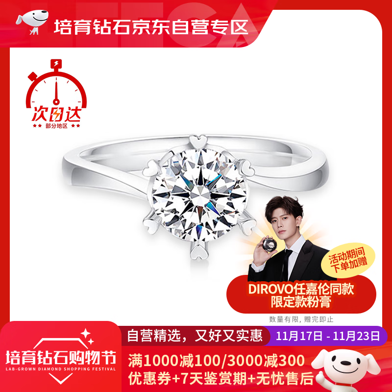 魔丽卡 Mooleeca扭臂爱心爪铂金50分DE色VS培育钻石女戒指求订结婚送女友老婆11号