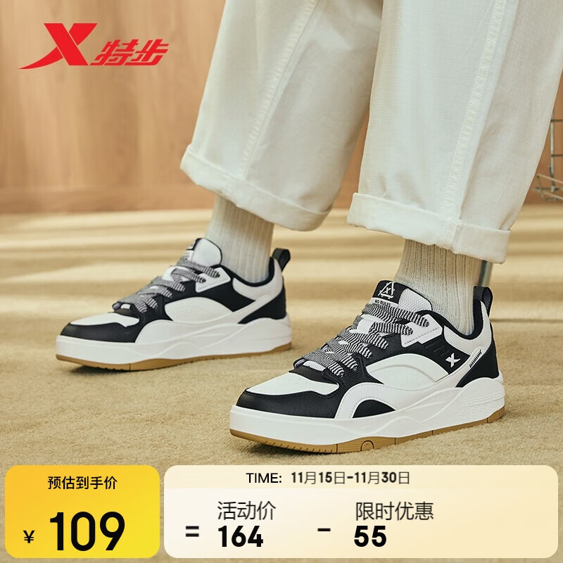 特步男鞋鞋子男驭桀冬季保暖户外运动板鞋时尚百搭 黑/帆白 42码
