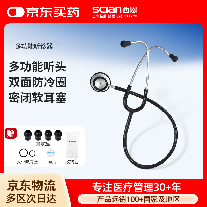 西恩听诊器医用儿科儿童听筒家用听胎专用医学生多功能心肺呼吸科医生成人家用30L钛银