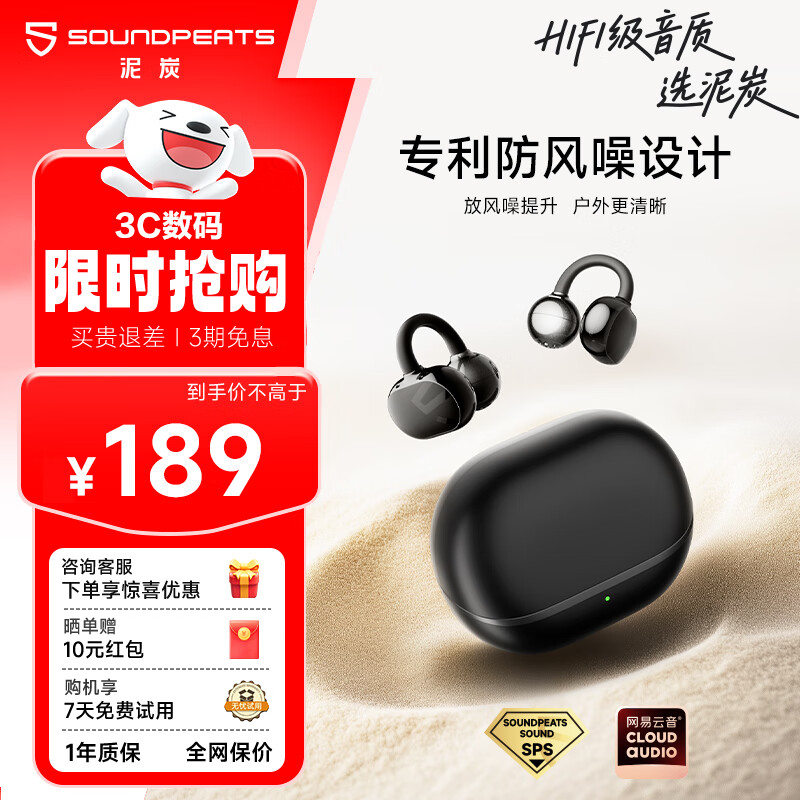 泥炭(SoundPEATS)UU夹 真无线耳夹式耳机 无线不入耳 双金标音质认证 开放式无感佩戴 蓝牙5.4 星宙黑
