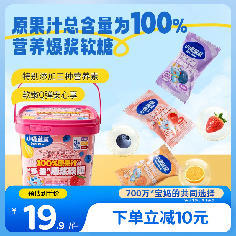 小鹿蓝蓝 100%原果汁多维爆浆软糖混合口味 宝宝儿童零食果汁软糖120g