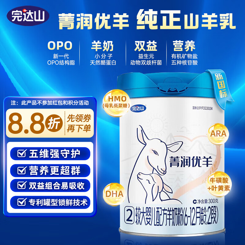完达山【新国标】菁润优羊较大婴儿配方羊奶粉2段300g(6-12个月婴儿)