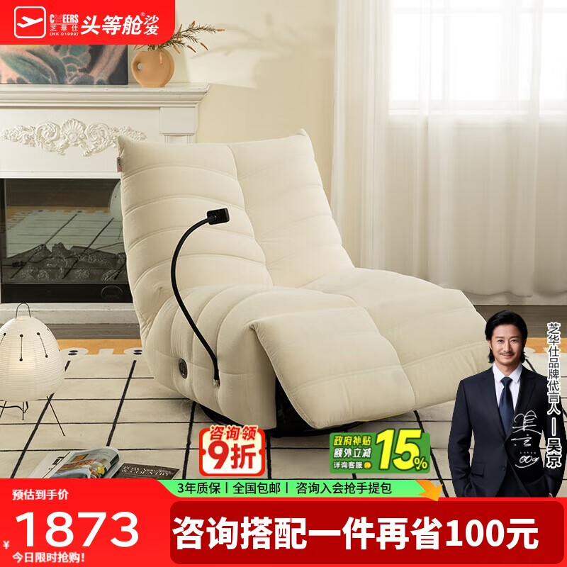 芝华仕(CHEERS)头等舱布单椅智能椅电动沙发客厅毛毛虫躺摇转椅芝华士30597白