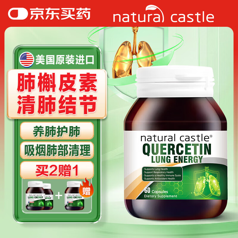 Natural Castle美国进口肺槲皮素胶囊60粒/瓶 养肺润肺吸烟者肺部清理