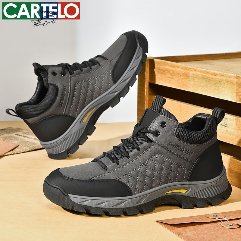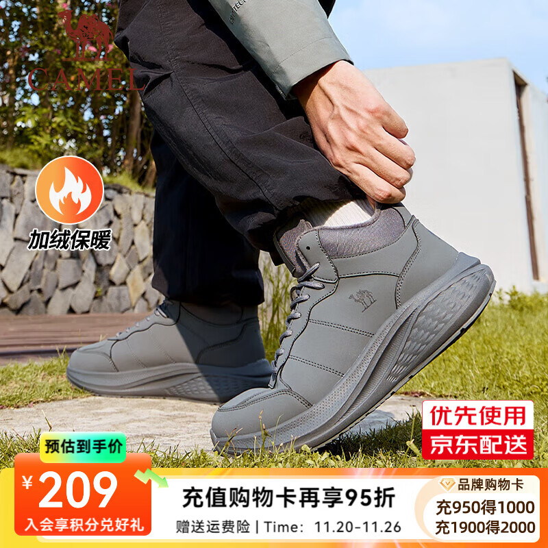 骆驼加绒休闲鞋男保暖棉鞋户外休闲运动鞋男 K14C608665,深灰,男 42