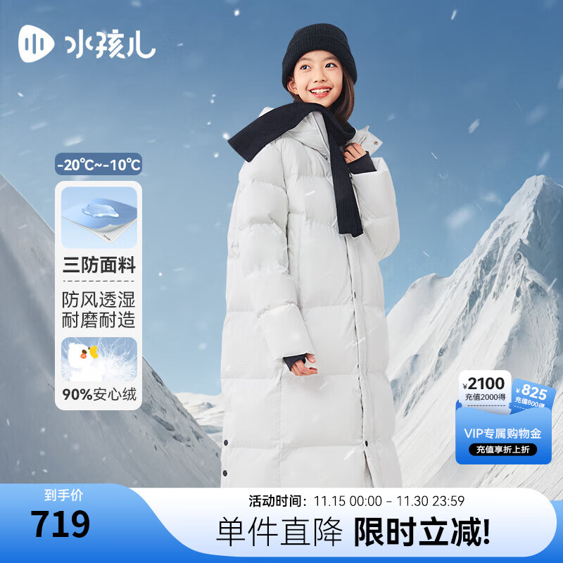 水孩儿(SOUHAIT)【极寒系列】童装男童女童长款羽绒服冬季儿童三防厚外套 云峰白 170 -充绒量268g