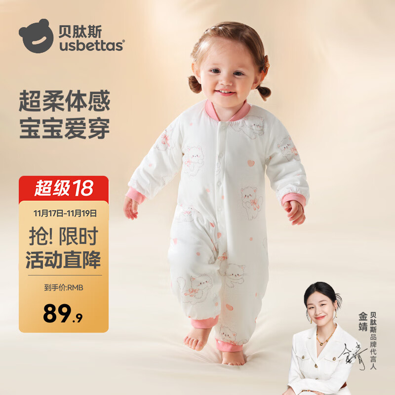 贝肽斯儿童连体衣春秋季夹棉恒温加厚保暖新生儿衣服男女宝宝连体衣 圣鹿花礼 59cm