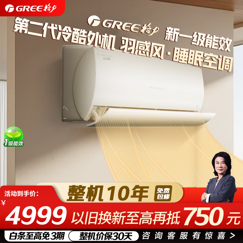 格力(GREE)云之舒新一级能效变频冷暖自清洁智能WiFi壁挂式卧室空调挂机 羽感风 以旧换新 国家补贴20% 1.5匹 一级能效