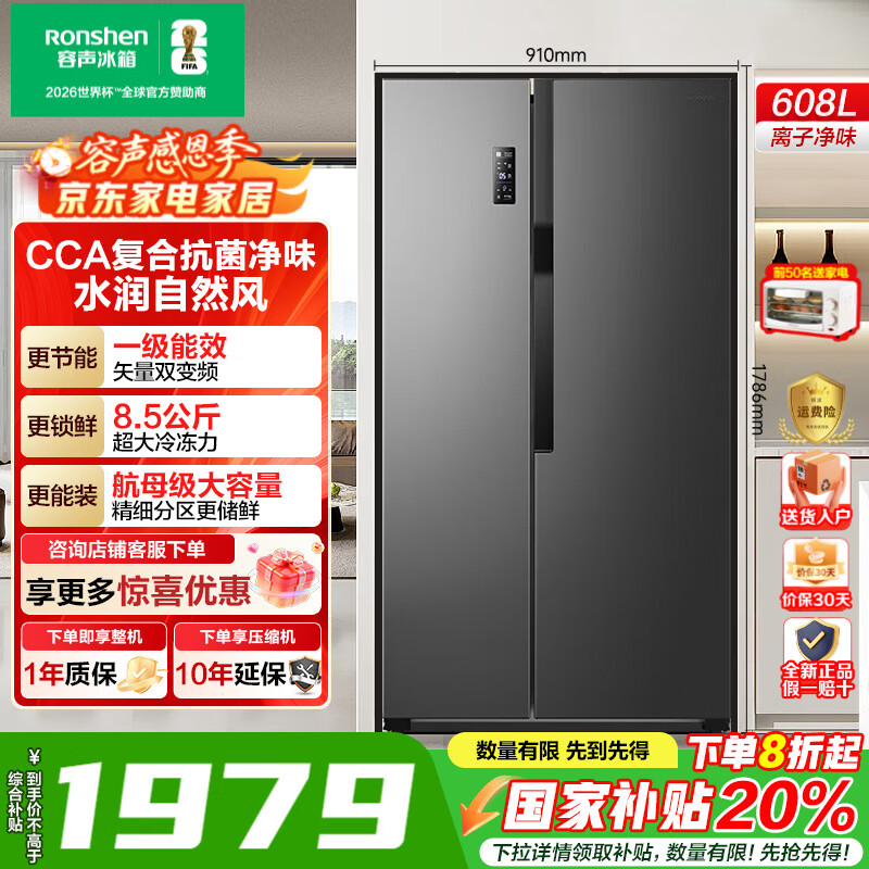 容声【国家补贴】608升双开对开门家用电冰箱离子净味一级能效变频风冷无霜节能省电大容量以旧换新20% 超大容量风冷无霜 BCD-608WD18HP