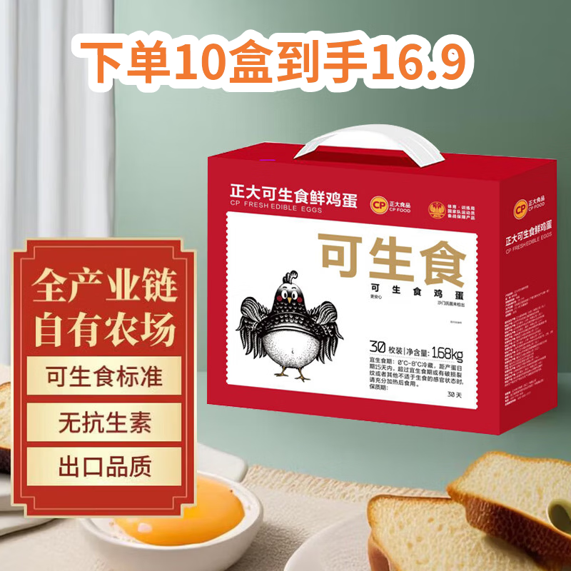 CP正大可生食鲜鸡蛋30枚 3.36斤 达到可生食标准 年货节礼盒装