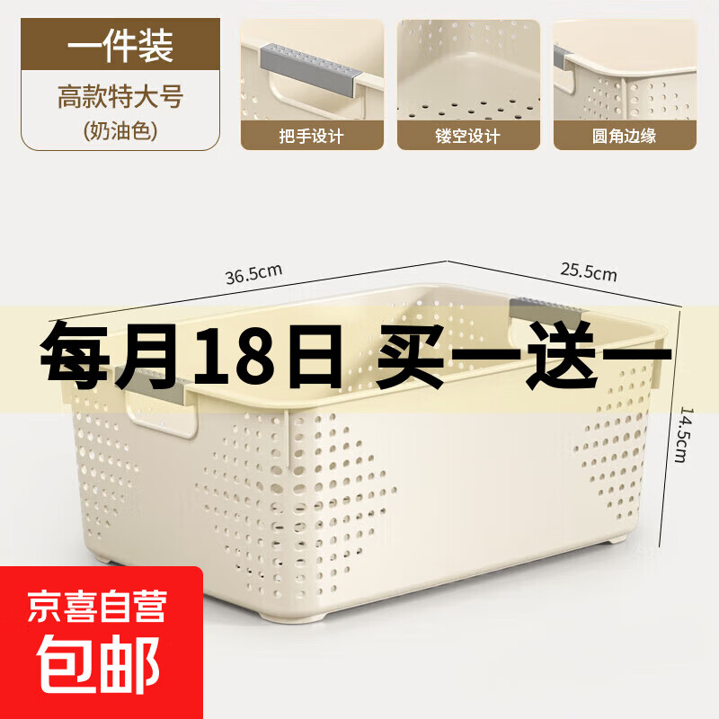 名创优品同款 杂物收纳筐塑料桌面收纳盒厨房橱柜零食玩具整理筐 奶油色高款特大号 36.5 * 25.5 * 14
