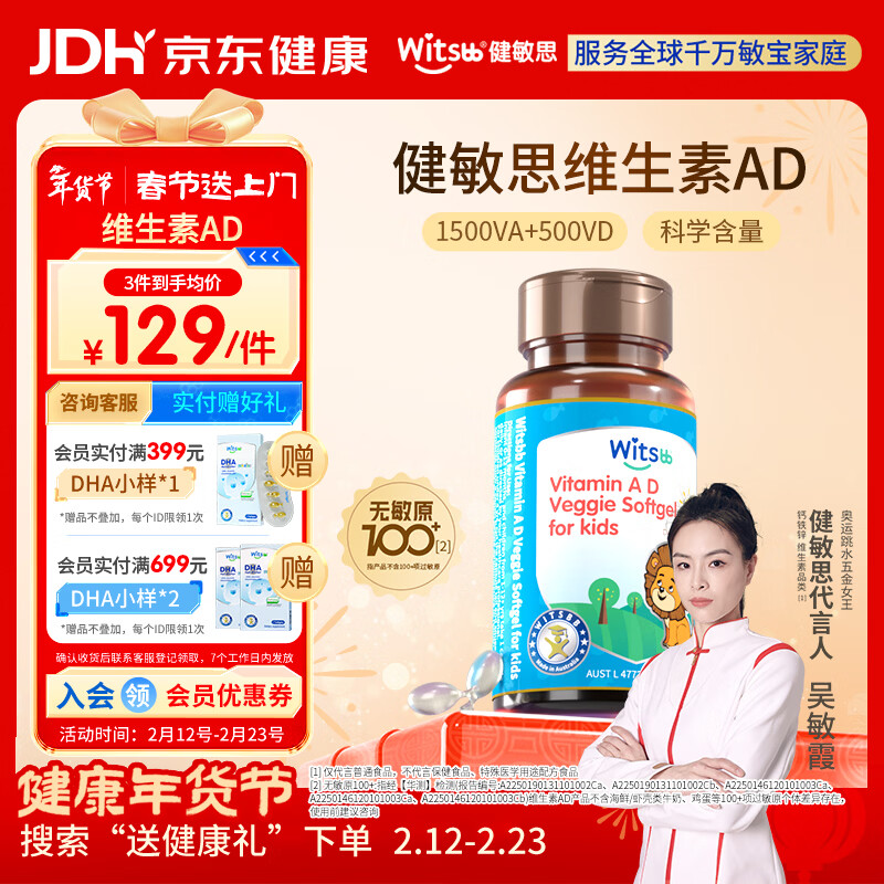 witsbb【吴敏霞力荐】健敏思婴幼儿维生素AD100+项无敏原 0-3岁D3澳版