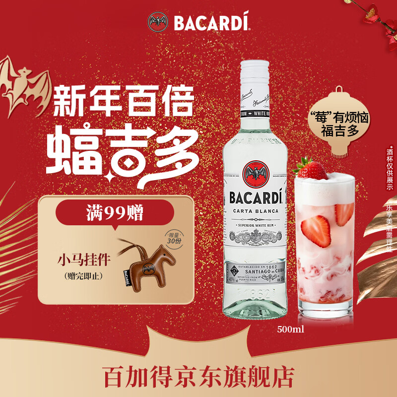 百加得(Bacardi)白朗姆酒 洋酒 莫吉托 鸡尾酒 基酒调酒 500ml 春节 年货 送礼