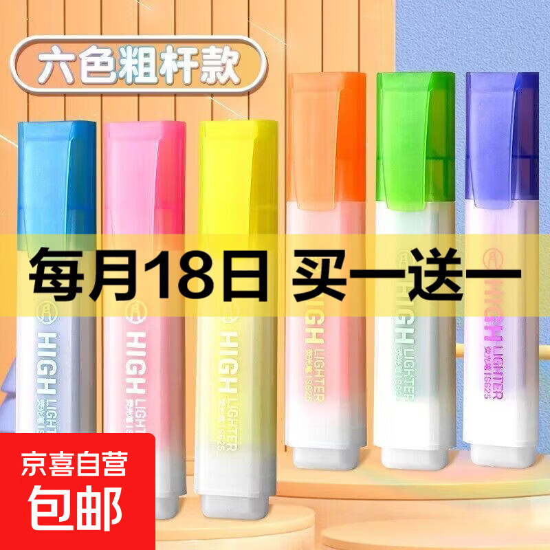方杆荧光笔大容量粗头高颜值学生手账笔记彩色粗划重点醒目记号笔 3支颜色随机-体验装