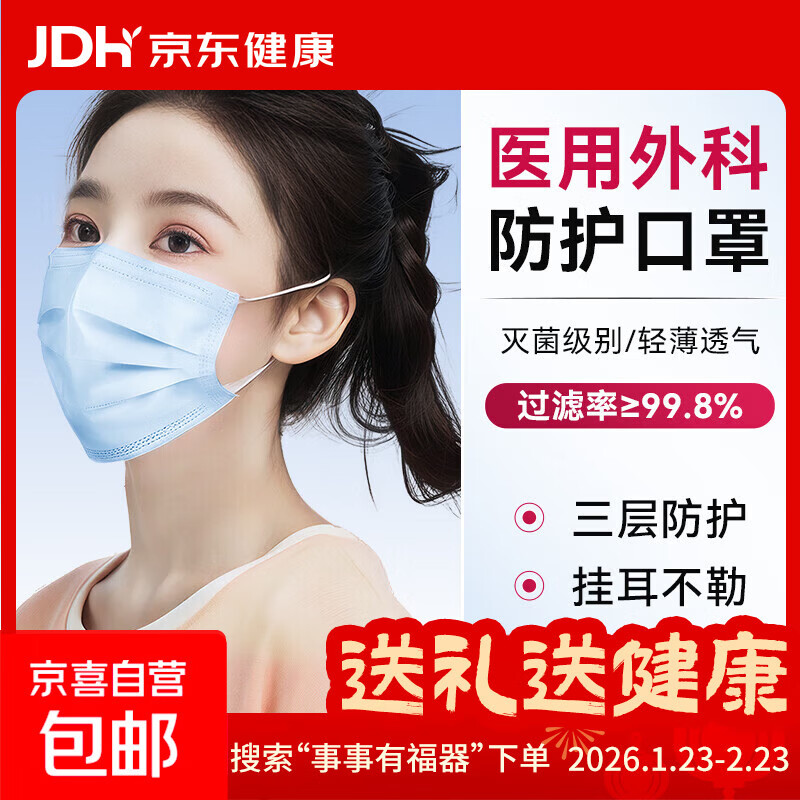 一次性医用外科口罩灭菌级挂耳式三层防护轻薄款透气防沙尘雾霾 成人外科口罩【10只】10只/袋