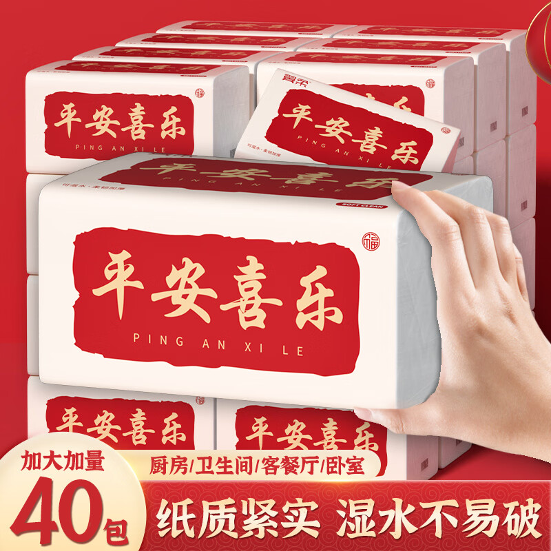 翼柔抽纸5层加厚40包家用餐巾纸巾面巾纸抽卫生纸厕纸整箱批发 5层 400张*2包