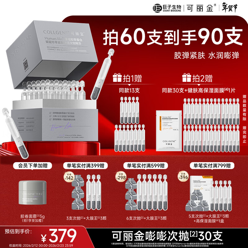 可丽金(COLLGENE)重组胶原蛋白嘭嘭次抛精华1.2ml*30支抗皱紧致保湿新年礼物