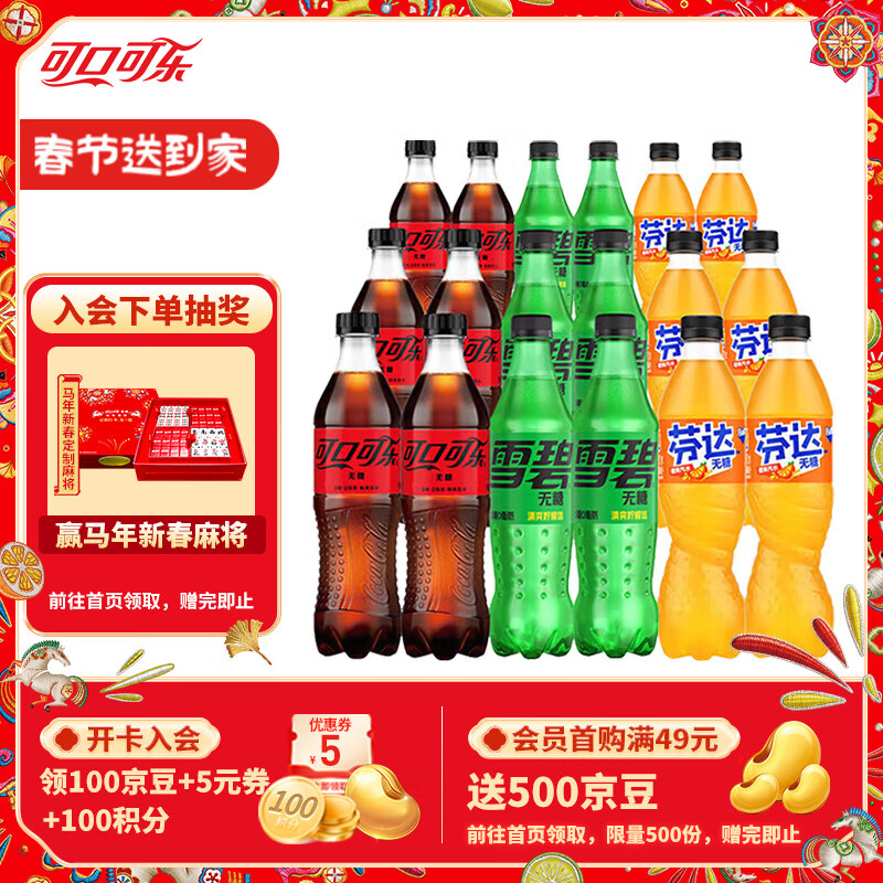 可口可乐混合装可乐雪碧芬达汽水碳酸饮料0糖0脂500ml无糖混合装 (可乐雪碧芬达各6瓶)500ml*18瓶