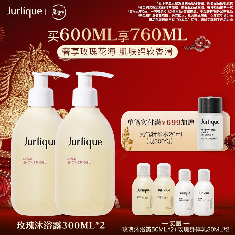 茱莉蔻(Jurlique)玫瑰柔肤沐浴露300ML*2 深层清洁柔滑肌肤花香型 新年礼物