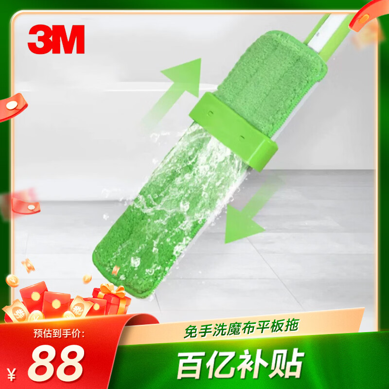 3M思高免手洗平板拖把32cm杆长130cm1布FH1家用一拖净免手洗2026