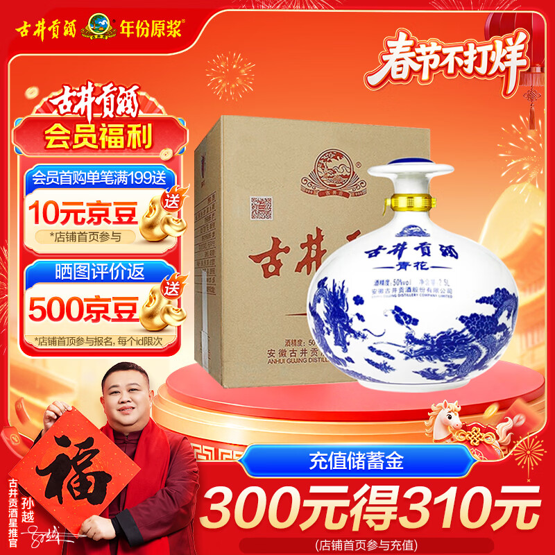 古井贡酒 青花大坛 浓香型白酒 50度 2.5L*1坛 坛装 口粮酒