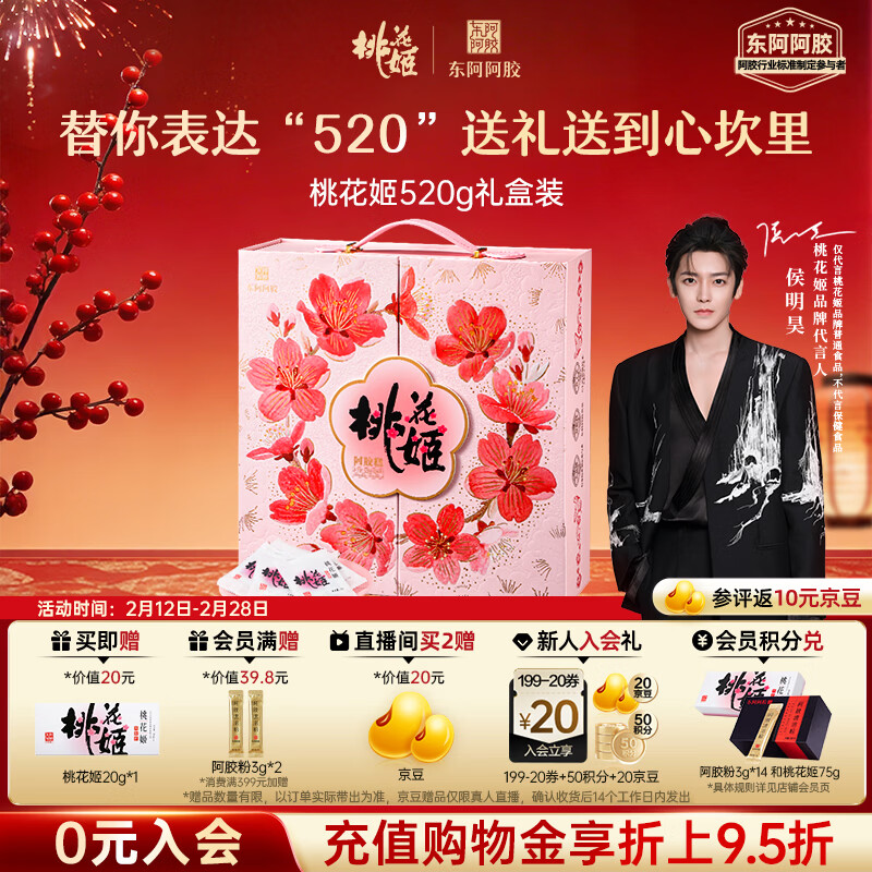 东阿阿胶桃花姬阿胶糕520g礼盒装年货礼盒送礼送妈妈送长辈女营养品滋补品