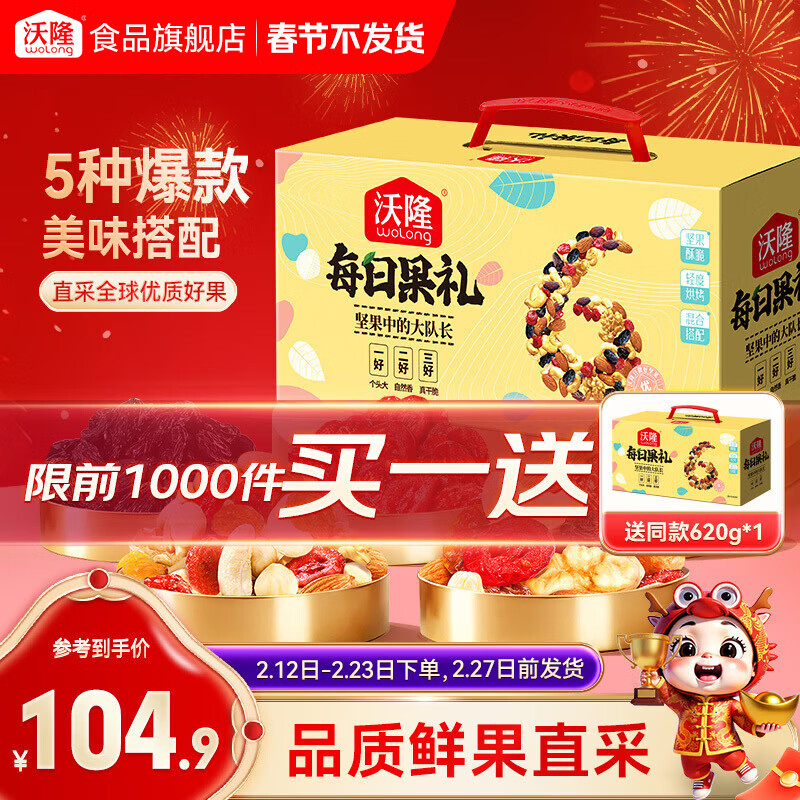 沃隆 每日坚果 混合坚果仁休闲零食坚果炒货自然原味送礼团购礼盒 620g/盒每日果礼升级款新品