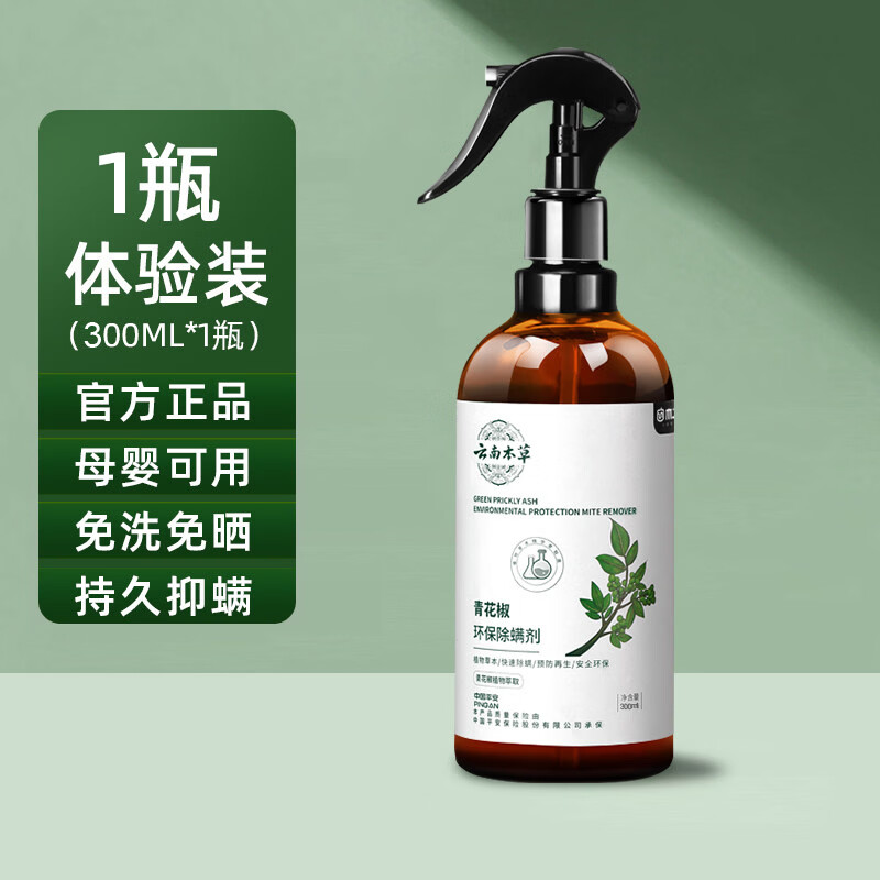 释清新除螨喷雾螨虫剂免洗家用床上去螨杀虫驱虫草本青花椒抑螨除螨包 300ml 1瓶 云南本草除螨喷雾