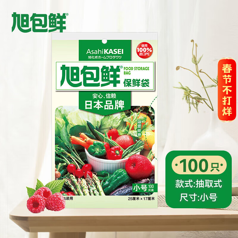 旭包鲜日本品牌保鲜袋小号一次性PE抽取式野餐食品分装25*17cm*100只