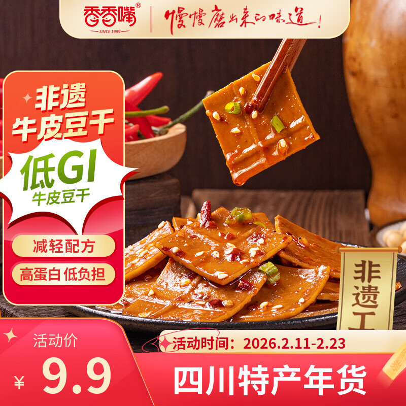 香香嘴低GI慢升糖牛皮豆干香辣味180g健康营养充饥零食追剧解馋办公室