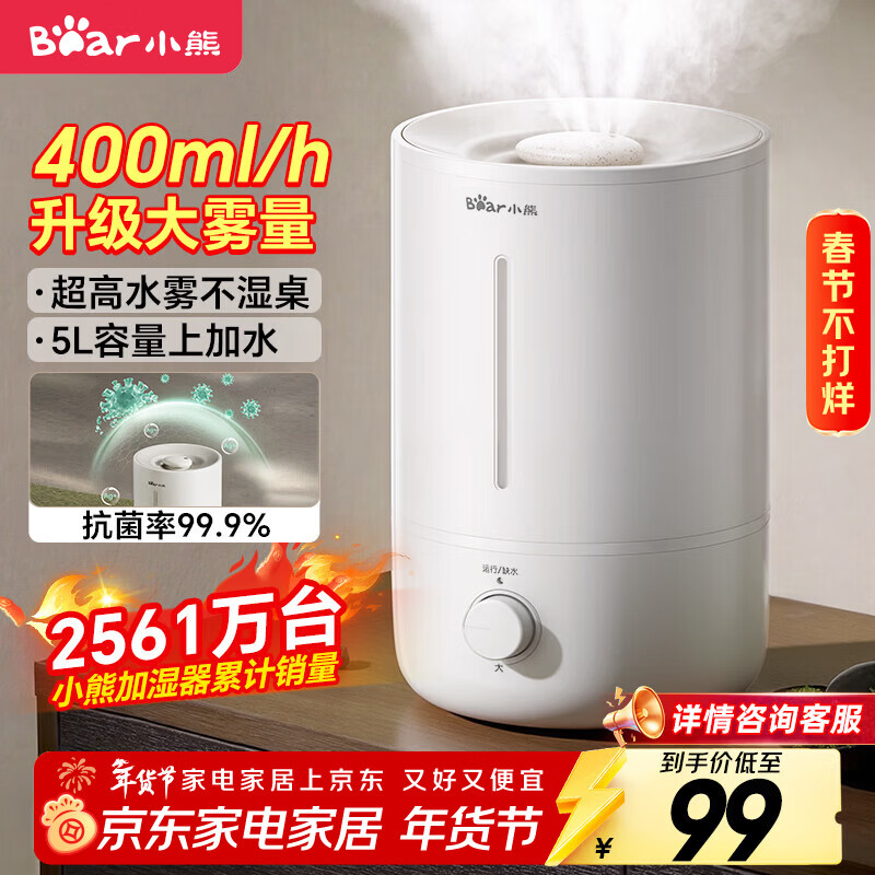 小熊(Bear)加湿器家用卧室 空气加湿母婴幼儿 办公室桌面小型加湿机JSQ-Z50G2